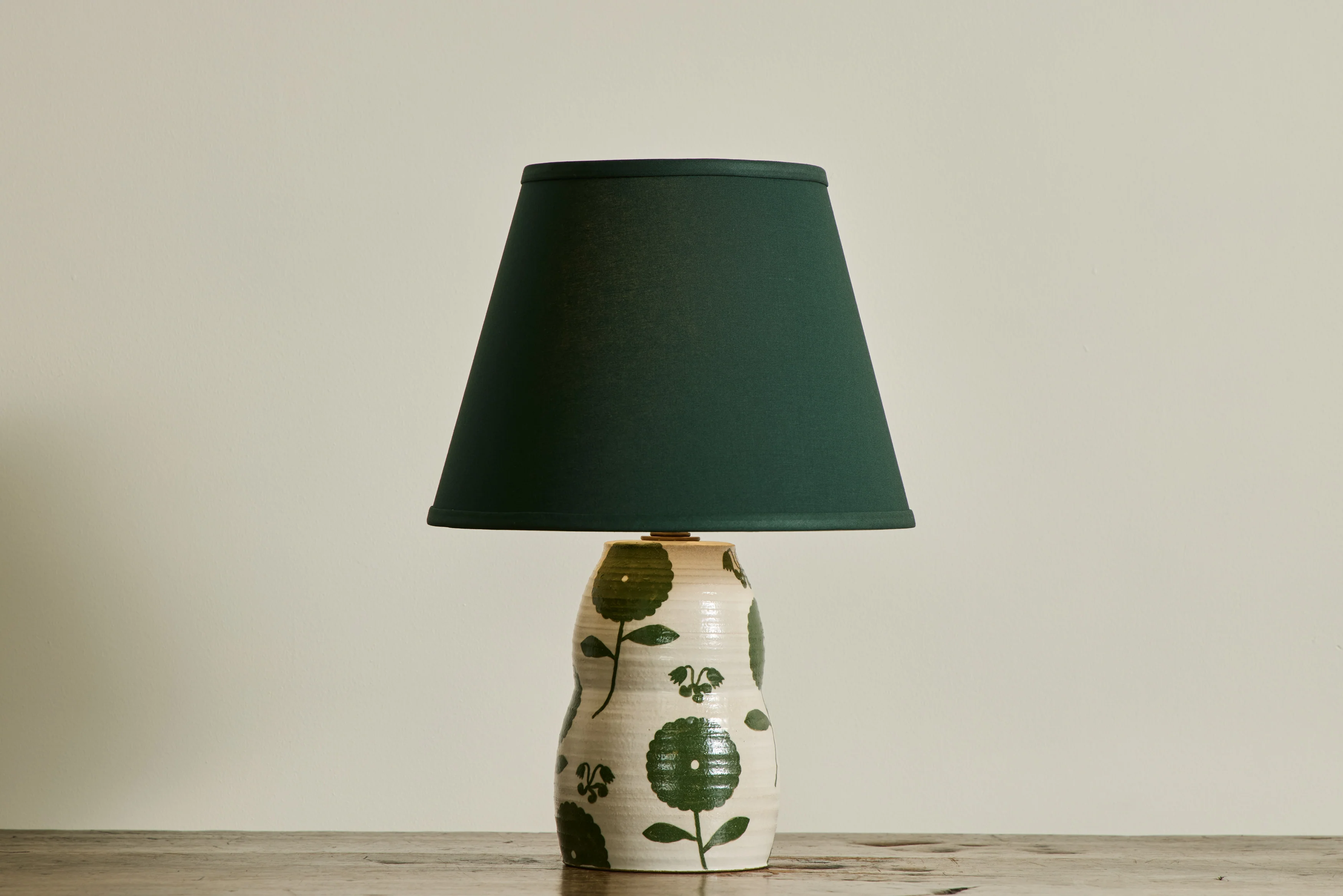 This ceramic lamp base is custom made and hand painted by renowned artist Rebekah Miles at her studio in Ojai, California. Inspired by organic shapes and imbued with her eye for beauty in naturalia, the Rebekah Miles Ceramic Table Lamp in graphic green florals lights up every room with surprising verve.