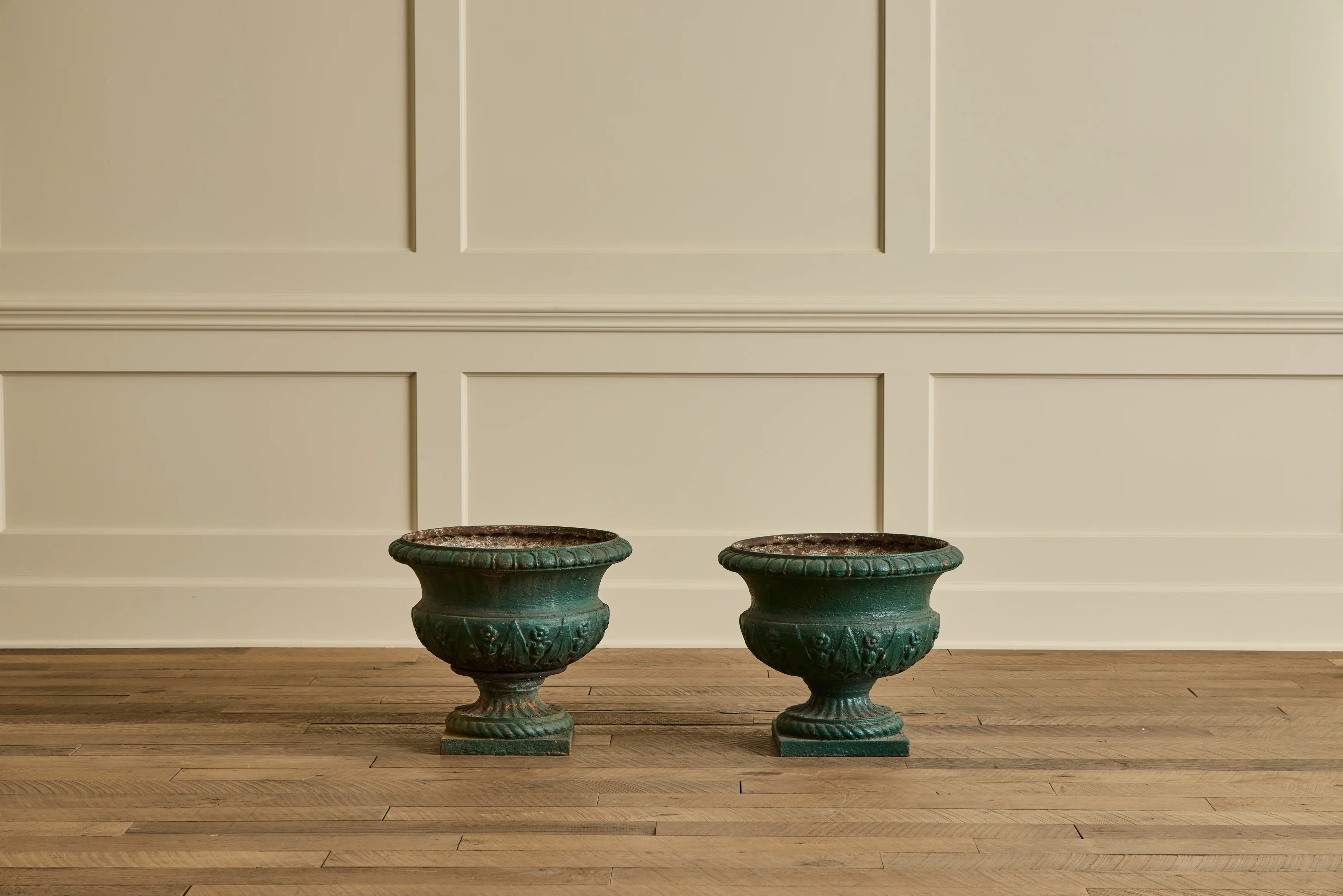 Pair of 18th Century Green Urns